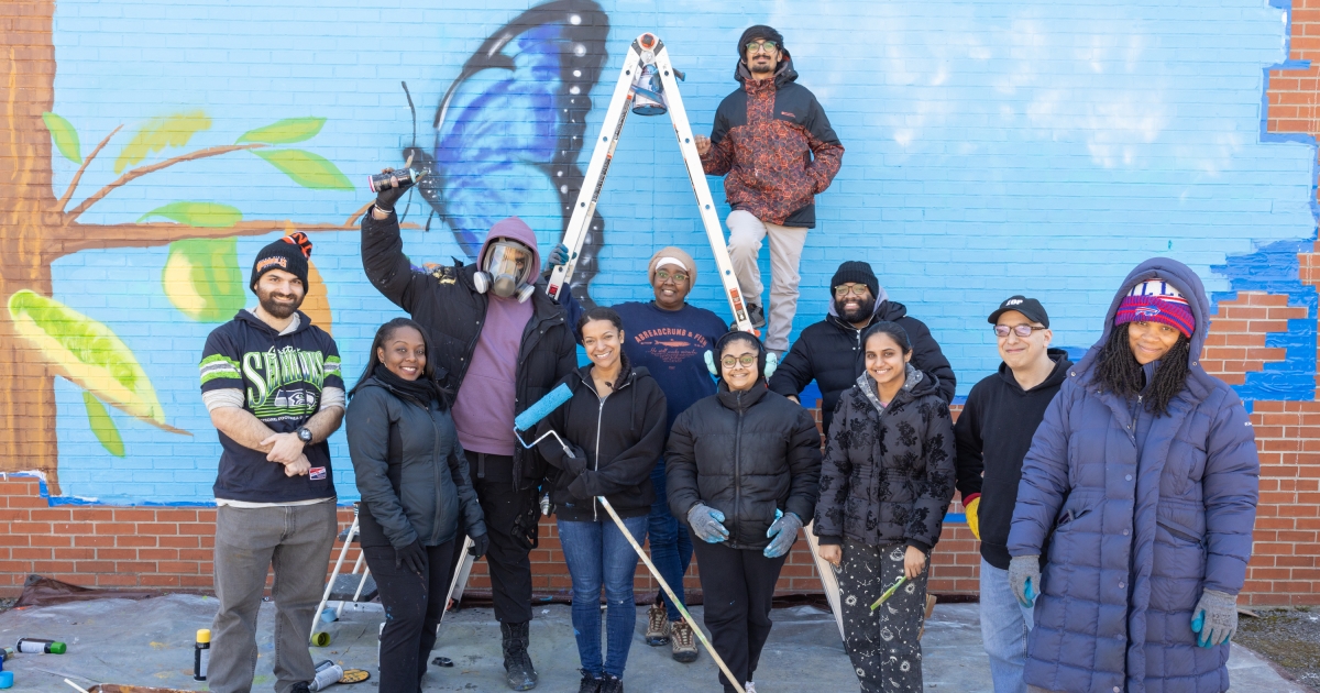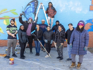 Coordinated and led by Lisa Kragbé, assistant director of the Civic and Community Engagement Office, and Erika Mitchell, senior counselor for the Arthur O. Eve Educational Opportunity Program (EOP), this year’s ASB focused on education access through a collaboration with the SUNY Attain Lab. The service project assignment was painting a mural for the Martha Mitchell Community Center that depicted the transformation of a butterfly, representing freedom; the bricks of the wall represent the obstacles and systematic barriers to education access that need to be removed. The mural was designed by Seishin_Ink, a contemporary artist whose work explores unspoken narratives through surreal abstractions.
