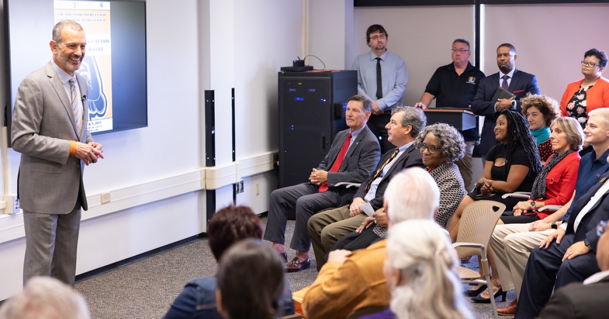 Robert M. Zak, Buffalo State Council member, read the official proclamation renaming the Donn Youngstrom Global Learning Lab at the unveiling.