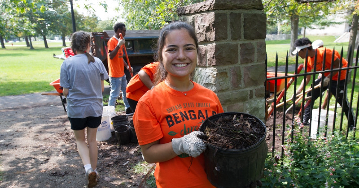 The certificate is similar to the President’s Certificate of Recognition for Community Engagement. In fact, students can apply the volunteer hours they accumulate during the challenge toward the other certificate, as well, Ackley said. The President’s Certificate recognizes three levels of participation: Students who volunteer at least 200 hours of community service over their course of time at Buffalo State receive the Community Supporter Award; Neighborhood Advocates contribute 400 hours of community service; and Active Citizen award-winners log 1,000 hours or more of volunteer activity.