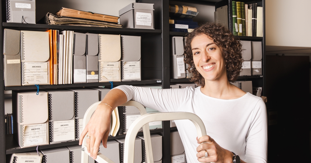 There, in the Archives and Special Collections, a tall, curly-haired woman with a sharp eye for detail, a near-photographic memory, and a quiet wisdom that belies her 34 years, stands ready to guide.