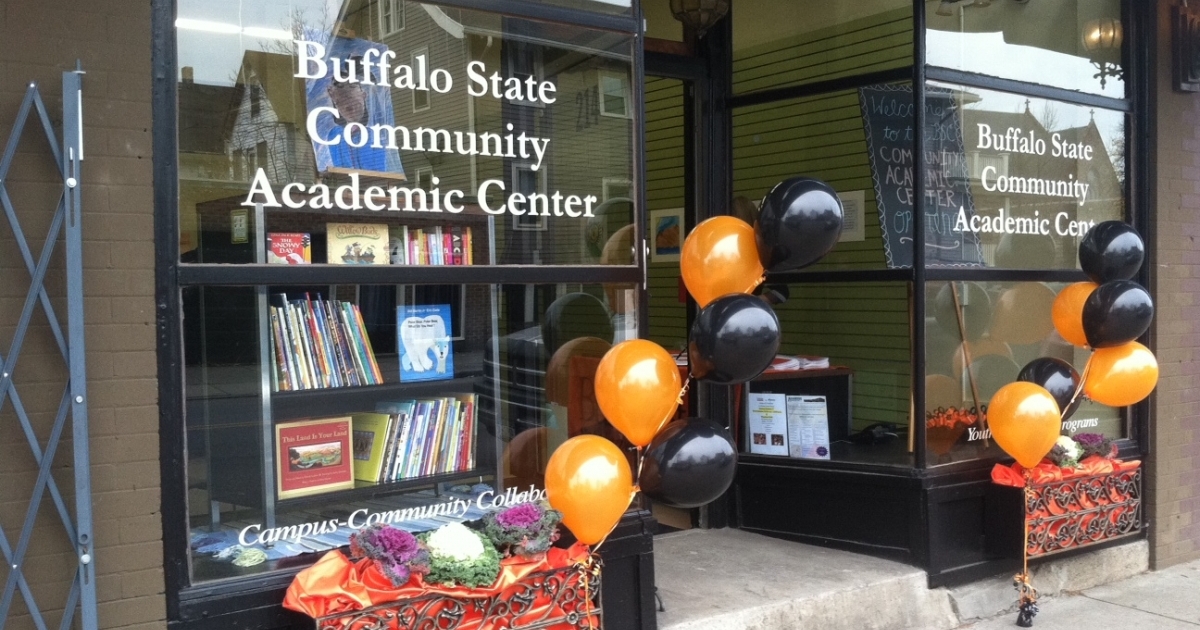 MECHS offers tutoring and support to high school seniors taking a full-time course load on campus, as well as alumni from the program who have transferred to Buffalo State after completing an associate’s degree at SUNY Erie Community College. The CAC works directly with members of the West Side community, offering English language classes, American citizenship classes, and youth programs.