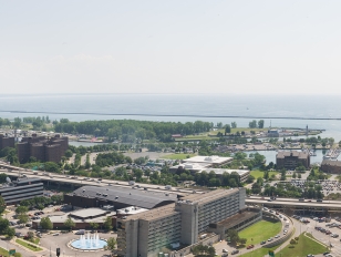 buffalo skyline with Lake Erie in the background