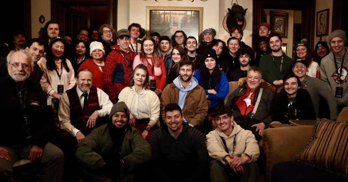 Hundreds of people came to see an exclusive preview cut of the 30-minute film written by Emmy Award–winning writer and Buffalo State alumnus Tom Fontana, ’73, (Oz, Borgia, Homicide: Life on the Street). The film follows a young man on a cross-state drive who gets lost and finds himself at a mansion where two strangers seem to know all the details of his life. The production crew, which largely comprised Buffalo State undergraduate students—many enrolled in the spring 2024 course TFA 480: Advanced Directing/Producing I—wrapped up filming in mid-March.